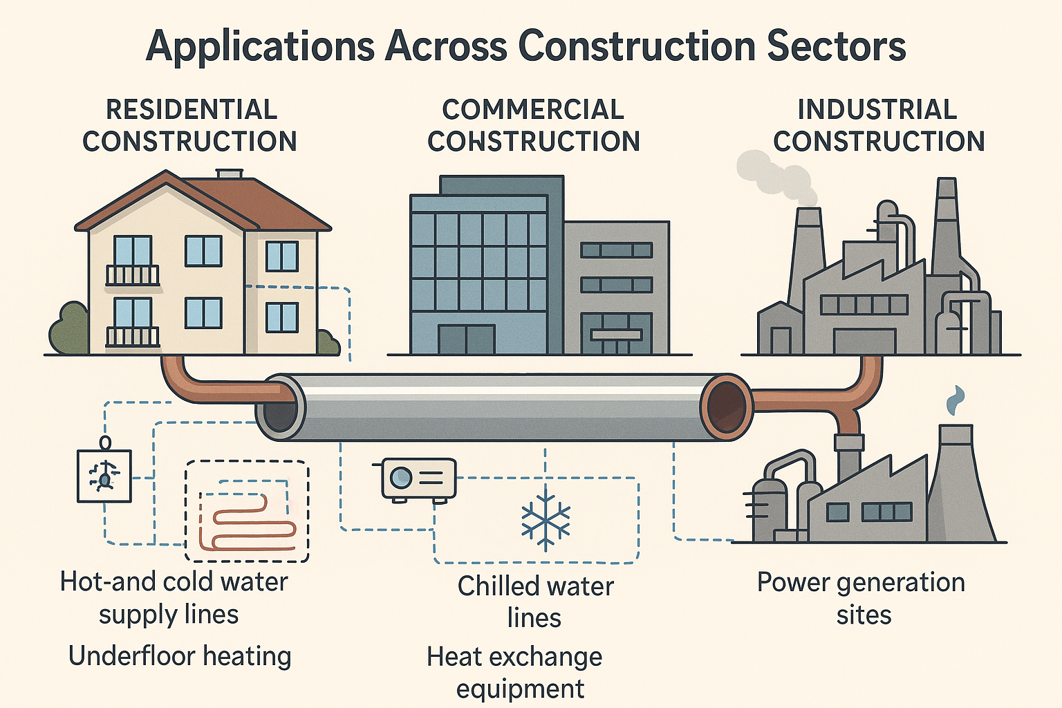 La versatilità di argento copper tubes li rende adatti per una vasta gamma di applicazioni edili . Dentro edilizia residenziale , sono comunemente usati in linee di alimentazione dell'acqua calda e fredda , sistemi di riscaldamento , e reti di riscaldamento a pavimento . La loro durabilità aiuta a ridurre il rischio di perdite e guasti legati alla corrosione, il che è particolarmente importante in edifici residenziali multiunità .