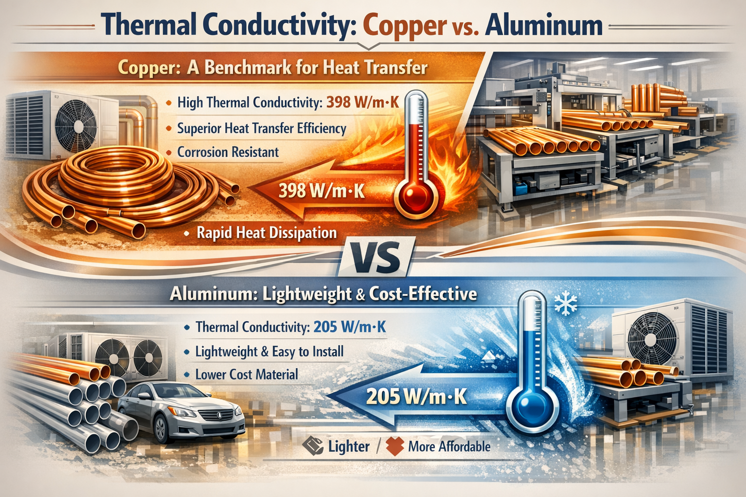 Questa tabella evidenzia le differenze distinte tra rame e alluminio tubi, con rame offerta superiore trasferimento di calore ma ad un costo più elevato, mentre alluminio è più leggero e conveniente ma presenta dei compromessi in termini di prestazioni e durata.