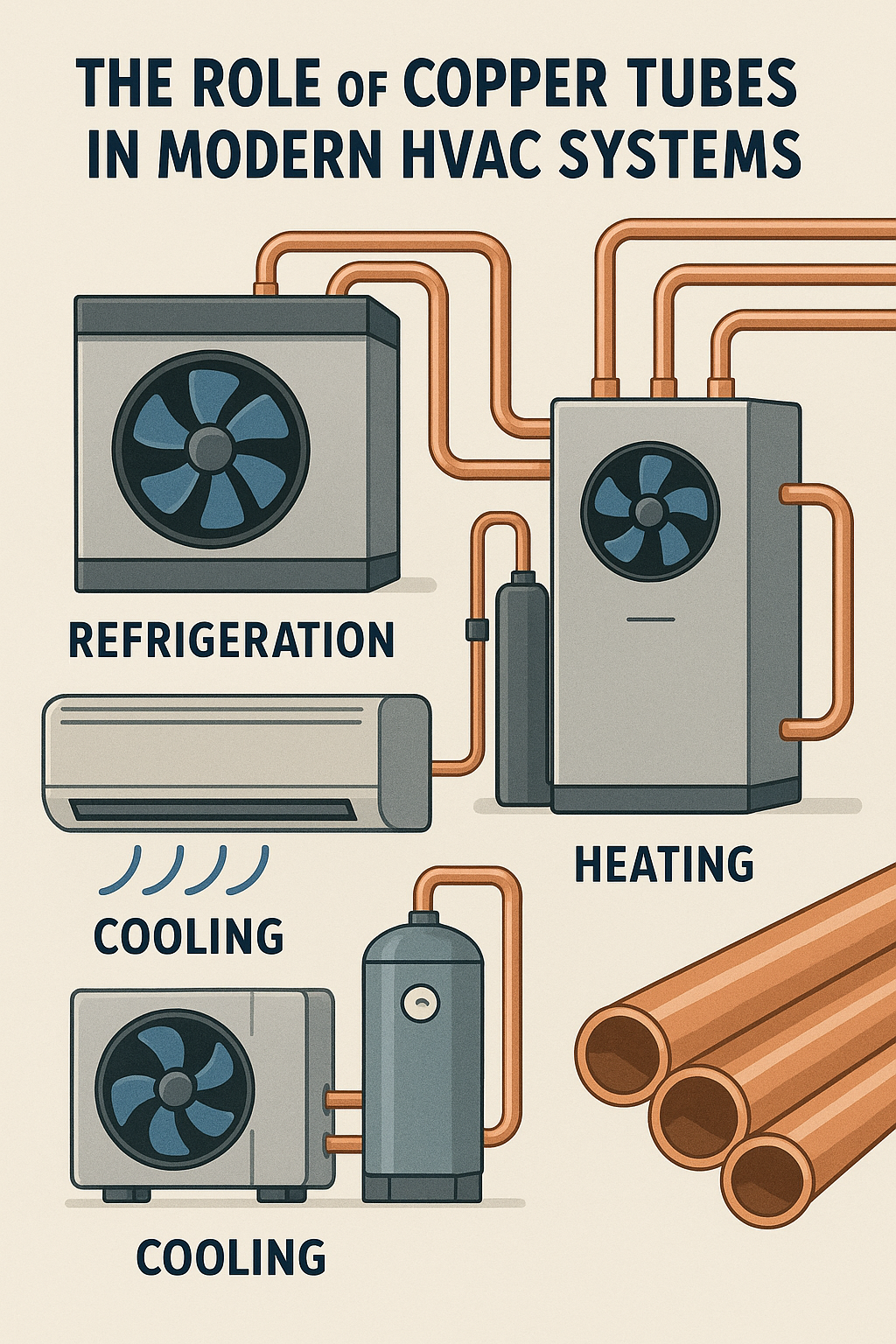 Integrazione delle tecnologie intelligenti : Man mano che le tecnologie per gli edifici intelligenti diventano sempre più diffuse, i tubi di rame vengono sempre più utilizzati nei sistemi HVAC dotati di funzionalità avanzate sensori , controllo automatizzato della temperatura , e algoritmi di risparmio energetico . Questi sistemi possono regolare le esigenze di riscaldamento e raffreddamento in base all’occupazione, alle condizioni meteorologiche e ai dati sul consumo energetico in tempo reale, migliorando l’efficienza dei sistemi HVAC basati su tubi di rame.