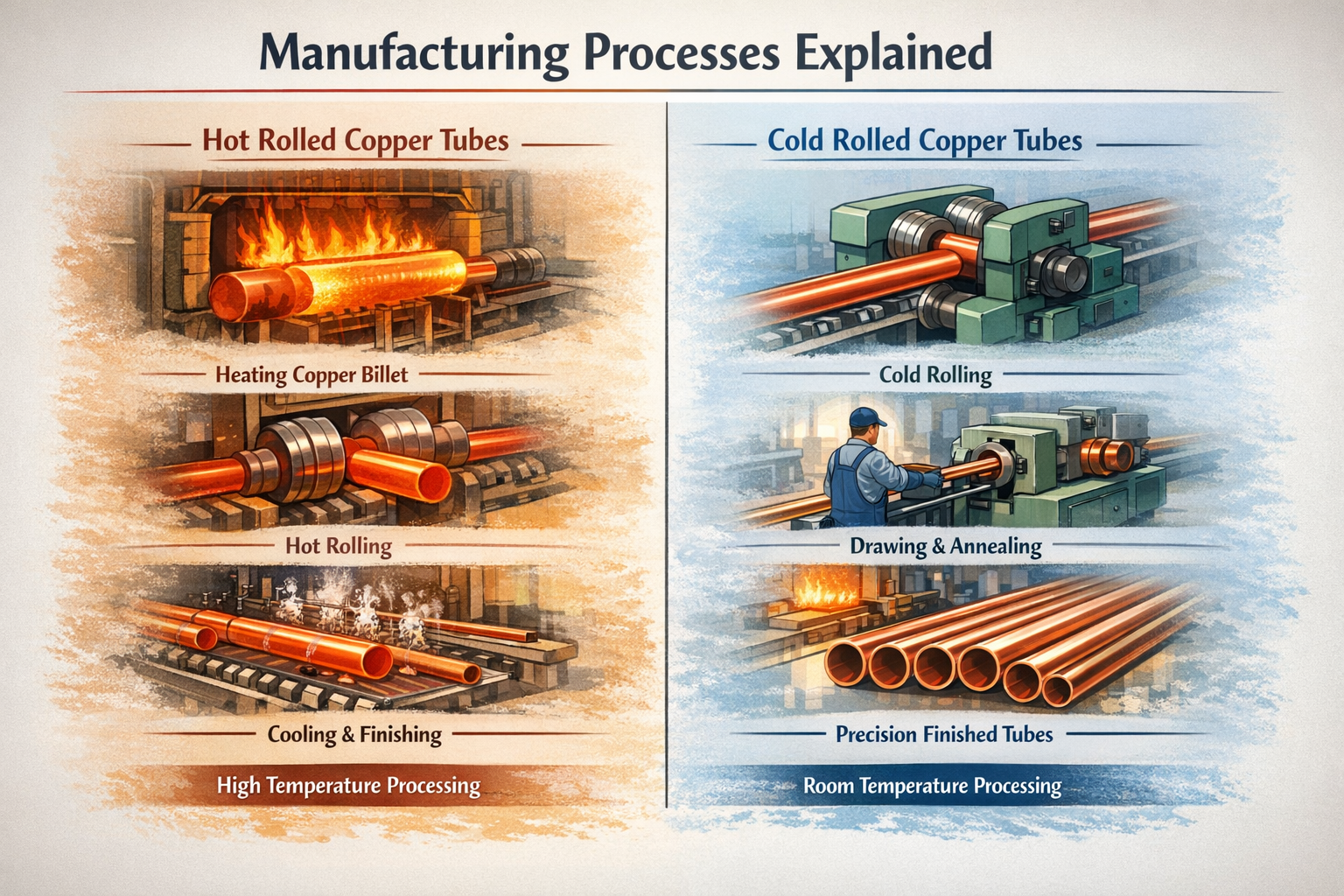 Il processo di produzione è alla base delle differenze prestazionali tra i tubi di rame laminati a freddo e quelli laminati a caldo. Un qualificato fabbrica di tubi di rame in genere offre entrambe le opzioni per soddisfare le diverse richieste del mercato.