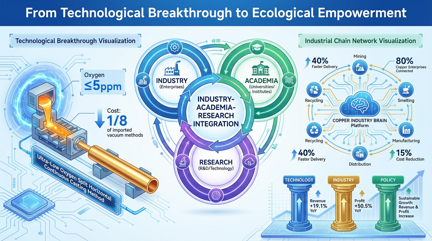 L’ambito della collaborazione si sta espandendo all’intera catena. Le imprese di rame dello Jiangxi hanno costruito un "cervello dell'industria del rame" che collega l'80% delle imprese di rame della città, consentendo la condivisione delle capacità e il coordinamento degli ordini attraverso l'analisi dei big data. Questo approccio alla piattaforma consente alle PMI di partecipare a competizioni di fascia alta: quando un'azienda riceve un ordine di grandi dimensioni, il sistema lo suddivide automaticamente tra più stabilimenti per la produzione parallela, riducendo i tempi di consegna del 40% e i costi del 15%. Sul fronte politico, il “Piano di attuazione dello sviluppo di alta qualità dell’industria del rame (2025-2027)” sostiene esplicitamente la creazione di consorzi di innovazione, con l’obiettivo di superare 10-12 tecnologie “colli di bottiglia” entro tre anni. Questa sinergia tridimensionale “tecnologia-industria-politica” ha contribuito a far sì che l’industria del rame dello Jiangxi ottenesse una crescita dei ricavi del 19,1% su base annua e un aumento dei profitti del 50,5% nei primi tre trimestri del 2025.