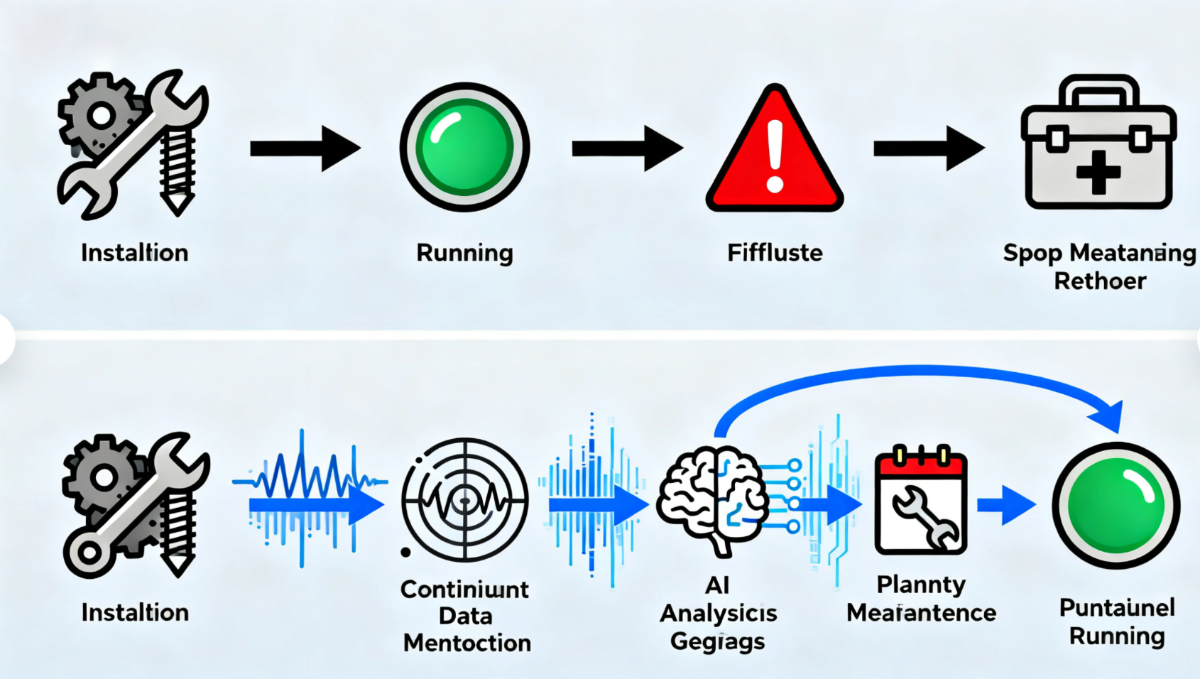 Didascalia: L'evoluzione dei modelli di manutenzione: dalla risposta passiva ai guasti all'intervento predittivo proattivo e basato sui dati, migliorando notevolmente l'affidabilità del sistema.