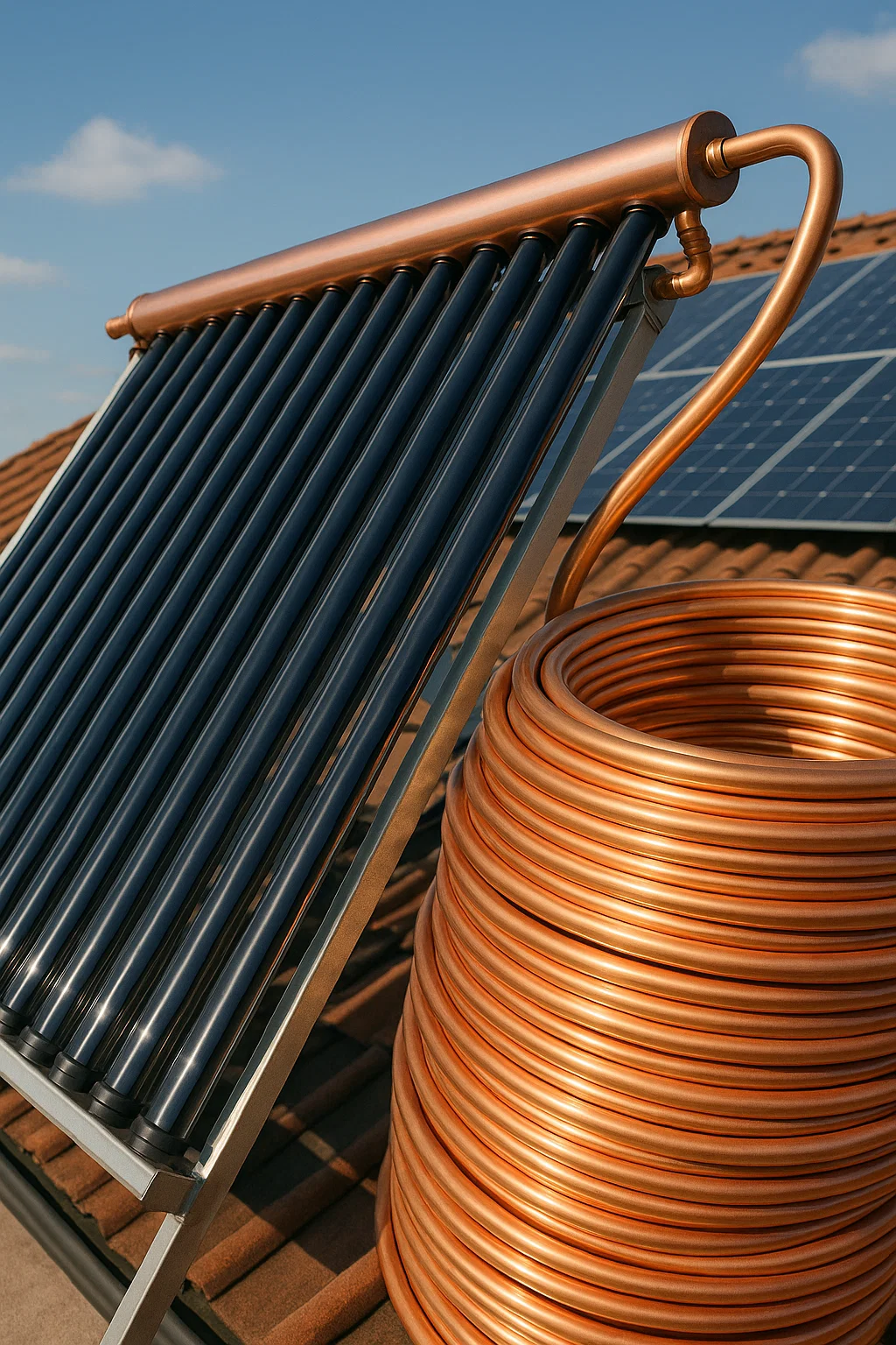 | Sistemi Solari Termici | Tubi di rame are used in solar water heaters for efficient heat transfer. | Con l’aumento della domanda di energia rinnovabile, cresce anche la necessità di tubi di rame nei sistemi solari termici, con i produttori che aumentano la produzione per soddisfare la domanda. |