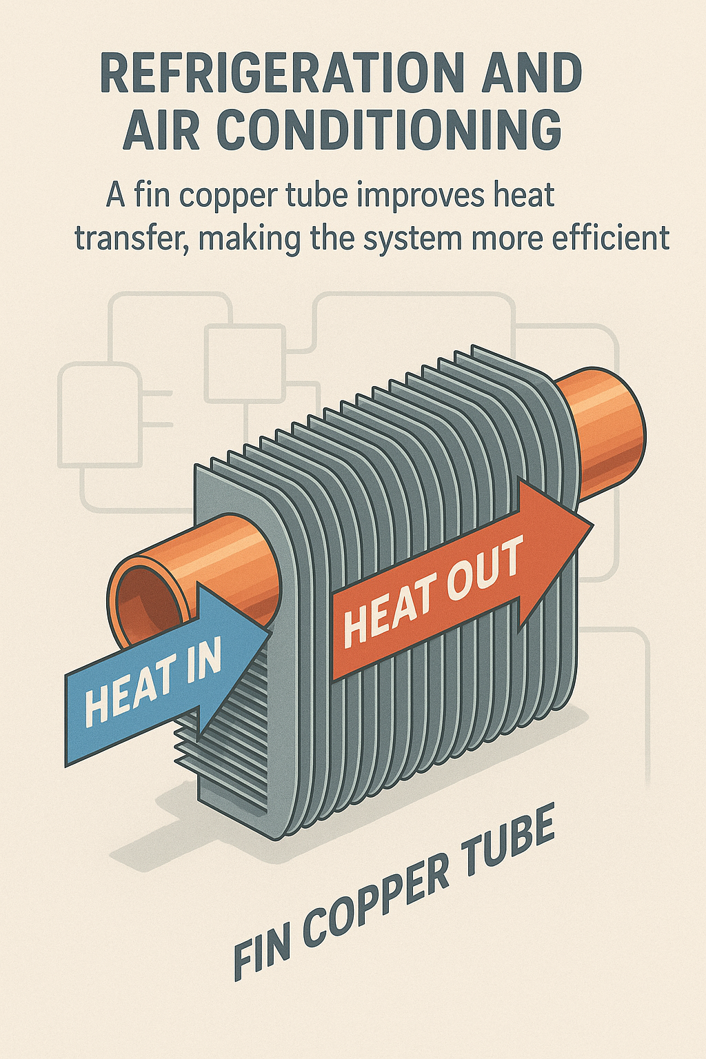 Nei sistemi di condizionamento dell'aria, i tubi in rame con alette sono ampiamente utilizzati nelle batterie dell'evaporatore e del condensatore. L'evaporatore assorbe il calore dall'aria interna all'edificio, mentre il condensatore cede il calore all'ambiente esterno. L'uso di tubi in rame con alette in entrambi questi componenti migliora l'efficienza complessiva del trasferimento di calore, portando a migliori prestazioni di raffreddamento e a un minore consumo energetico.