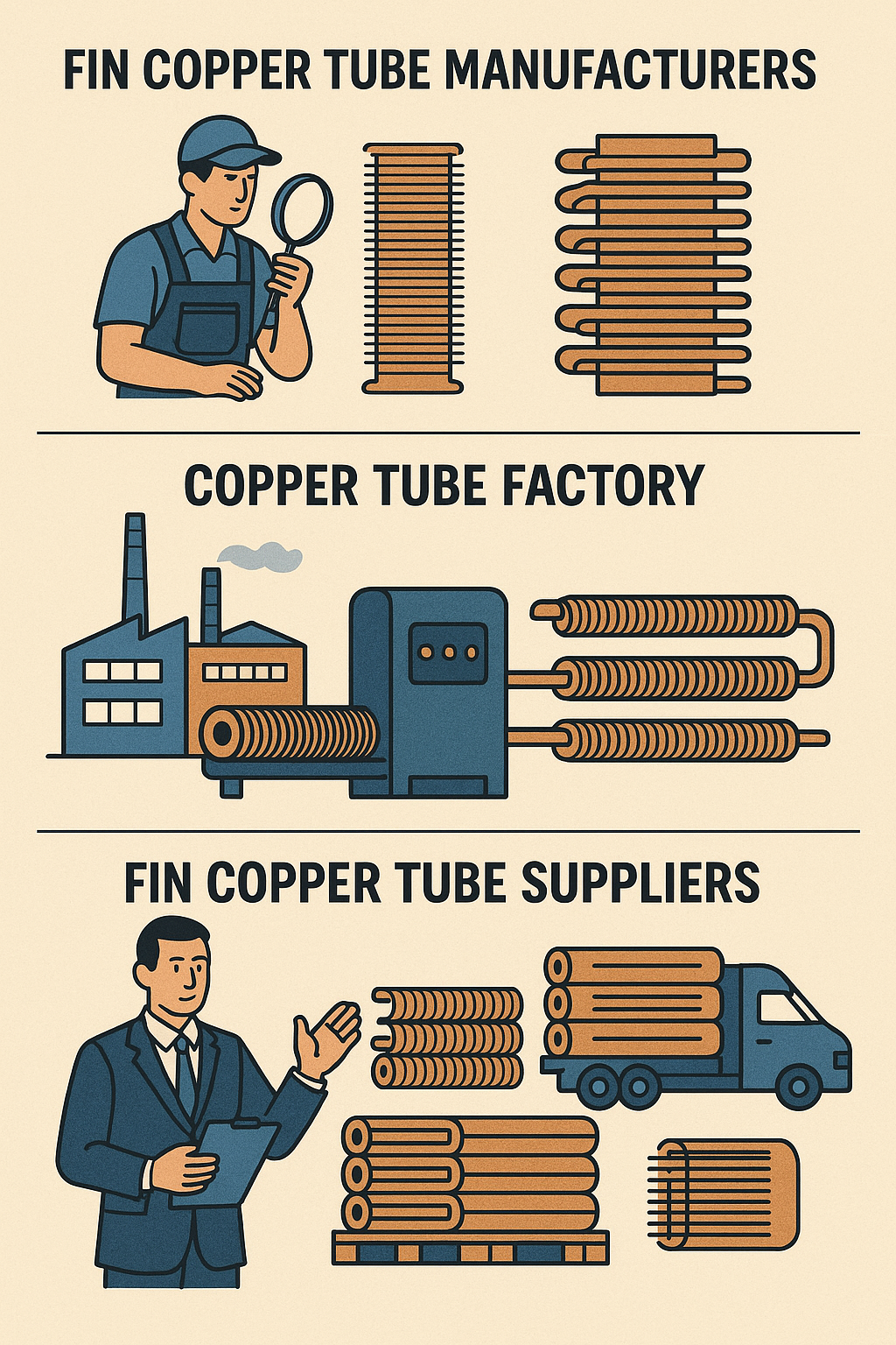 Produttori di tubi in rame con alette sono responsabili della produzione di tubi in rame di alta qualità progettati specificamente per applicazioni di scambio termico. Questi produttori lavorano con tecniche di produzione avanzate per creare tubi durevoli, efficienti ed economici. Il loro ruolo nella catena di fornitura è cruciale, poiché garantiscono che i materiali soddisfino gli standard di settore e le specifiche del cliente.